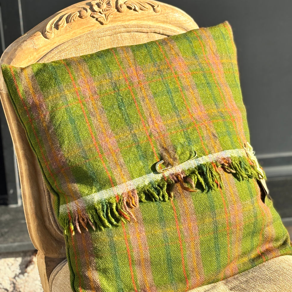 Joli coussin bien moelleux cousu à la main à partir de tissu ancien chiné (lainage)